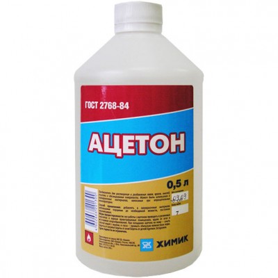 - Acetone - highly volatile liquid with a pungent odor, perfectly dissolving nitrocellulose. Reagent is fire hazardous. In various proportions it is easily mixed with alcohols, ether compounds and water.