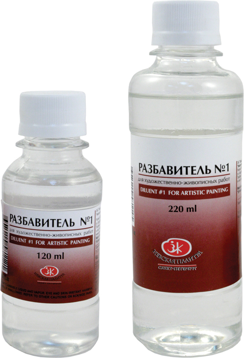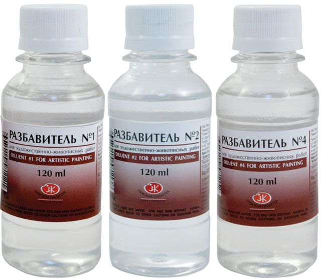 - ZHK - solvent number 1. When added to the oil paint reduces its saturation and increases the drying time. Serves as a good tool for the withdrawal of frozen substances from the palette and brushes. Perhaps the most common among contemporary artists who write on canvas.