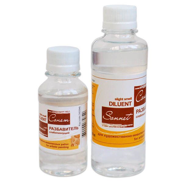 - "Sonnet" – odorless diluent. The company "Sonnet" is famous for its good products, as well as widespread in our country. The solution is a purified white spirit, with which the paint becomes more transparent, which makes it possible to make more accurate transitions and gradients. This property is especially important for those who love to paint landscapes.