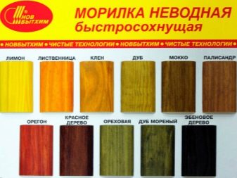 Water-based weave has an extensive color palette of shades imitating all types of wood: from light beige to black. If you need another color, for example, green, then you need to look for it among non-aqueous stains.. To create a saturated hue, it is necessary to apply several layers or to add more dry constituent when preparing the solution.