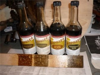The buck is of two kinds. The first group is water-soluble - it can be sold in ready-made solution or in powder form. Water stains are safe - they can safely handle children's furniture. They do not have a sharp unpleasant odor, penetrate deep into the texture of wood, have a low price and can be made independently.
