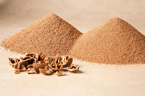 - crushed walnut shells with the addition of a solution of potassium dichromate.