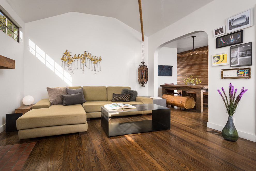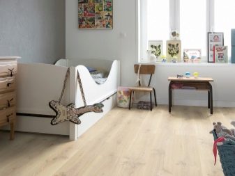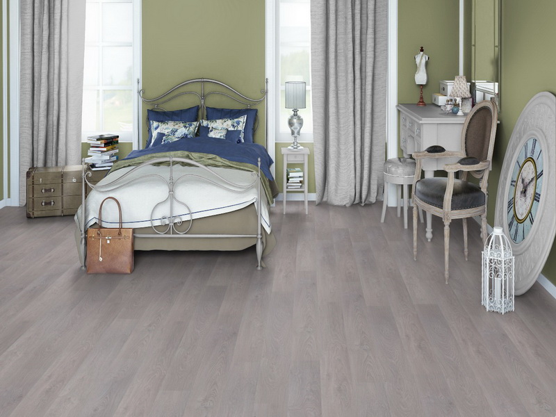 - Such a floor covering allows you to place heavy and good-quality furniture on it without the risk of damage to it: for example, a bulky piece of furniture made of solid oak or a difficult metal construction. From such objects on the surface of the laminate will not remain cracks, dents or scratches;