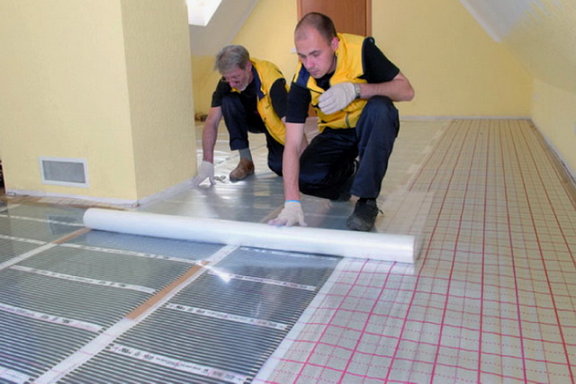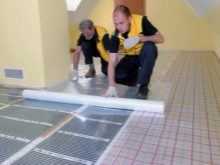 If you install the infrared film, you will not encounter a decrease in the height of the room, and at the same time such a heater consumes less current than the most effective cables. But on the other hand, infrared film is quite expensive it cannot be used wherever there is high humidity. And be sure to need a flat base, otherwise there is a risk of breaking the device.