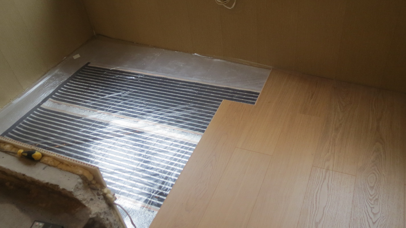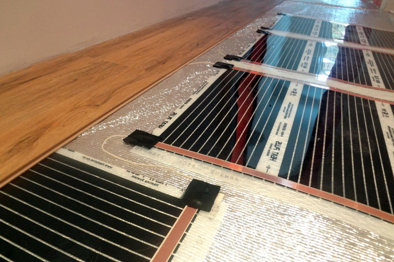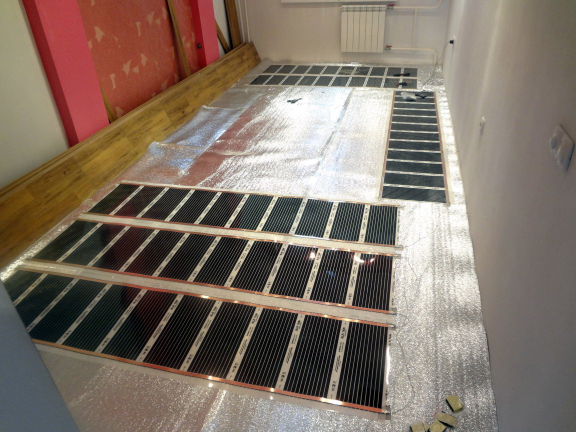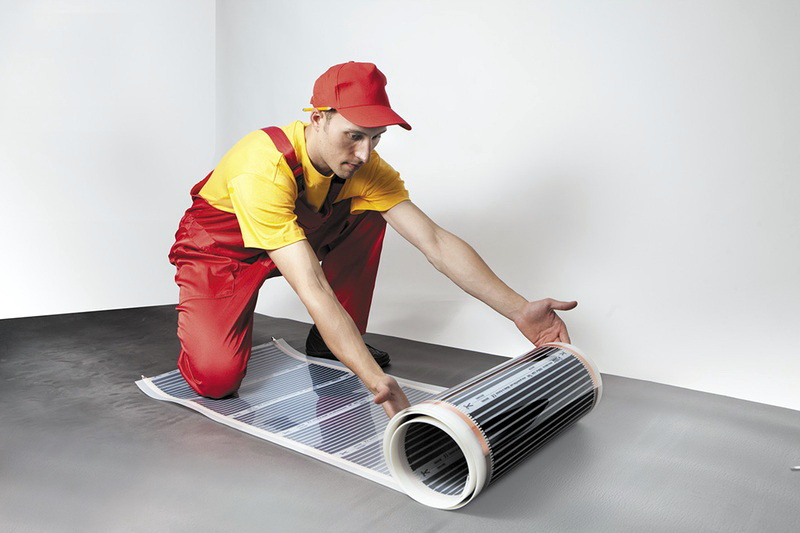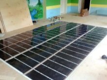 Infrared film is the most advanced development in the field of floor heating. Very little will have to be done: the heating block itself is placed on the heat-reflecting material and covered with polyethylene. Everything after this will only lay the front cover.Even the screed, mandatory for electric and water warm floors, is unnecessary. But grounding, since we are still talking about a current-consuming device, is an absolutely necessary thing.
