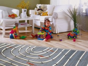 If you compare the laminate with other flooring, it becomes clear - it is ideal in the sense that allows easy access to preheating devices. Heating allows you to safely walk on the floor, even in the most severe winter, without fear of hypothermia and discomfort. Install underfloor heating should be at every opportunity, they are quite practical.Carpets will not be allowed, because they will block air circulation and may cause overheating.