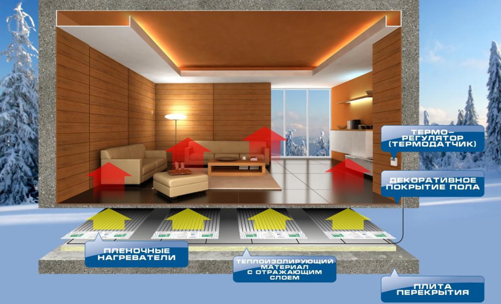 Electric cable floors and even mats require the use of a screed, again - again it will not be possible to preserve the wooden base. As in the case of tubular structures, alternatives can be found, but they are all just as simple and less effective. The conclusion is absolutely obvious: it is better to find nothing better than infrared floor heating and for a private house (not only for an apartment). This solution eliminates any “wet” installation work and can be put into operation in a few days.