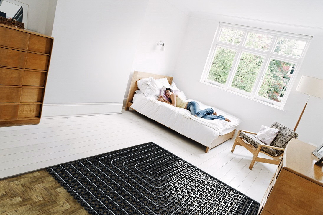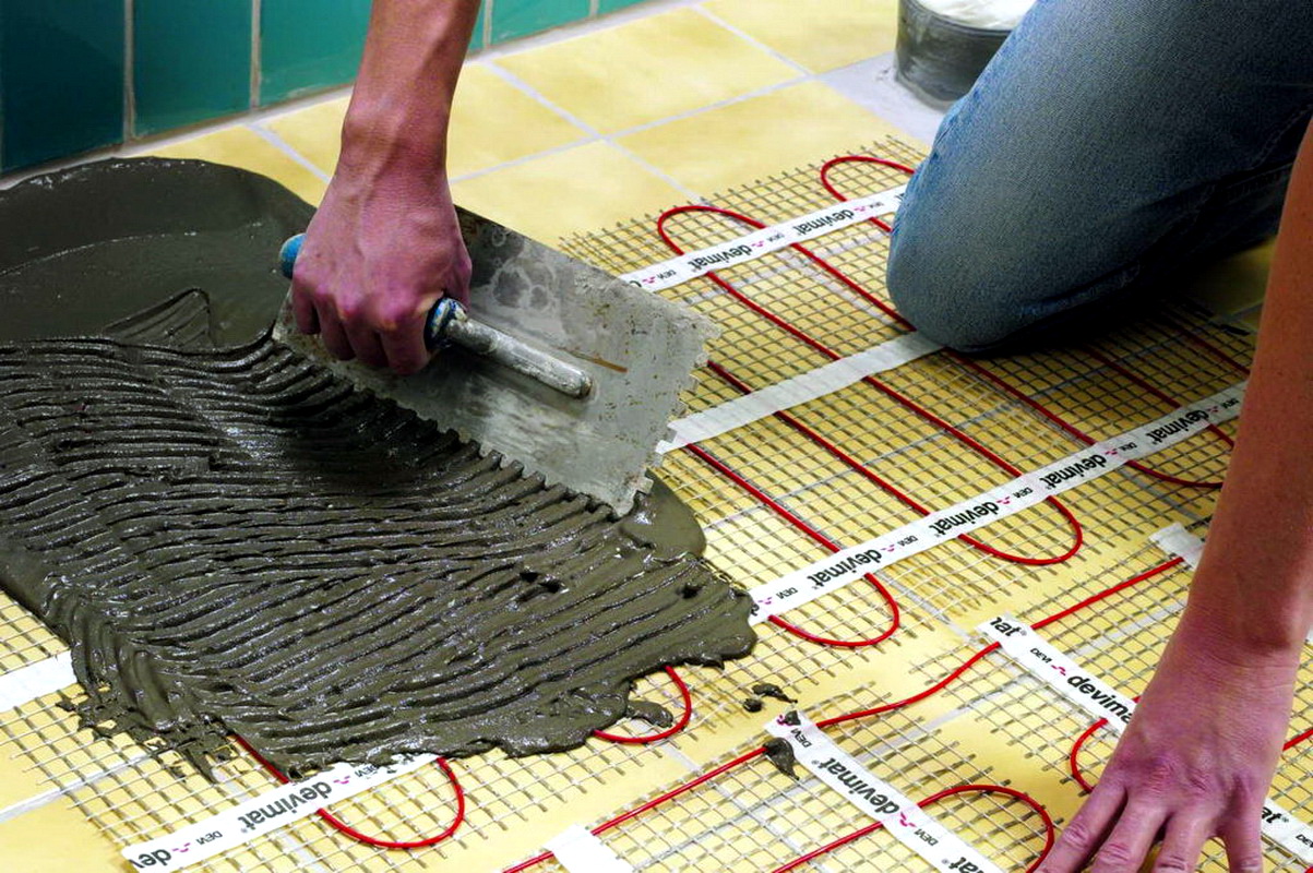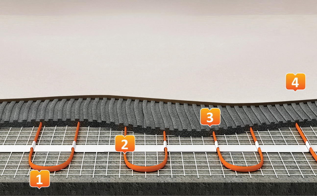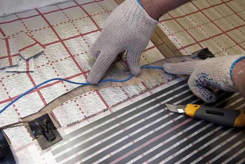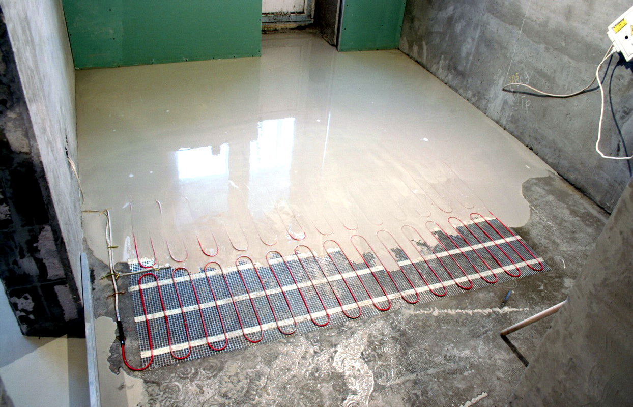 To install an electric floor heating is necessary only after careful preparation of surfaces. The base of the floor is cleaned, if necessary, then leveled and insulated. The choice of materials for leveling and thermal insulation depends on your personal preferences. On top of it is a thin screed, into which a reinforcing mesh is inserted, the screed must dry at least 48 hours. After that, fix the mounting tape.