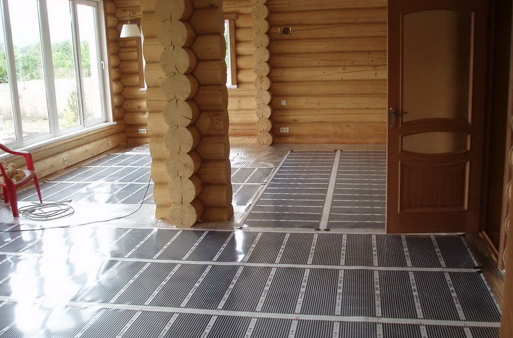 With all the strength of wooden rough floors, it is undesirable to overload them and if this consideration is important for you, it is appropriate to prefer the infrared option. When there is a well-equipped, established system of independent heating, you can also use it to supply hot water to a water-heated floor. Film designs are good when you want to insulate a country wooden house: