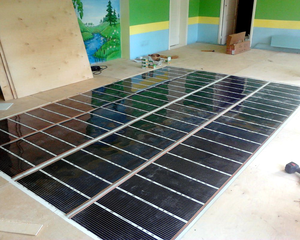 It is not allowed to put films under the furniture, only on the free part of the floor. Consider that the “phase” is in the infrared film itself, and it is necessary to install the most reliable protective cutout devices.