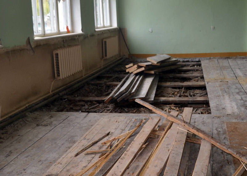 Set such a "layer cake" will only in the case if the general condition of the original floor is satisfactory or can be fixed by redecorating. In very old buildings it is often necessary to change the foundation. When using a water heated floor, the former wooden base will need to be precisely removed and a screed instead. The works are quite complicated and time consuming, because, for example, it is necessary to prepare a concrete solution.