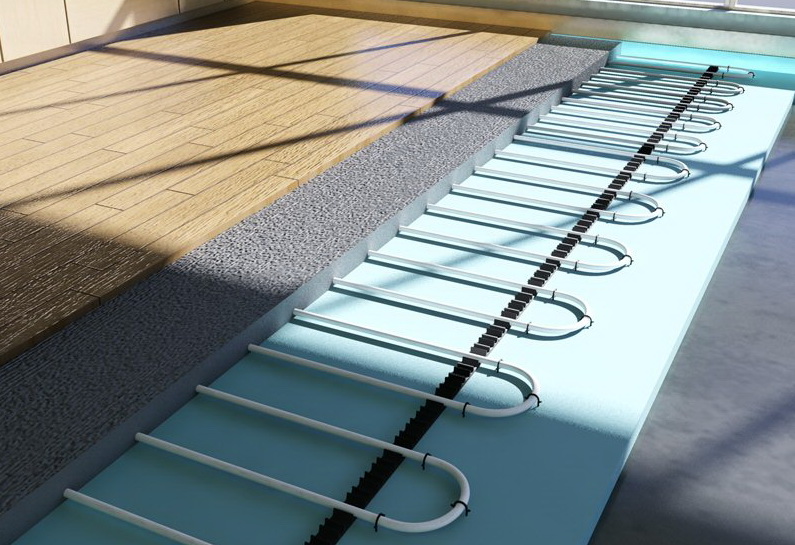 Water-heated floor should be placed on the substrate, providing both water absorption and heat saving. Fiberboard almost does not let in heat, that is, it cannot crack, but it is difficult to warm it up. The substrate placed above the heater should ideally have perforation for the passage of heated air to the floor covering.