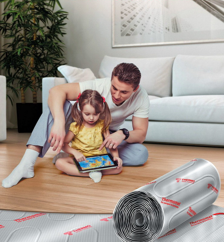 Be sure to check not only the flatness of the floor, but also that it is clean and dry. 100% of the surface is covered with heat-reflecting material having a dense layer. The use of aluminum foil in any form is unacceptable. Using adhesive tape fasten parts of the substrate. Once it is ready, you can choose a place to connect the thermostat. The built-in regulator and the wires through which current flows to it must be placed in the gate.
