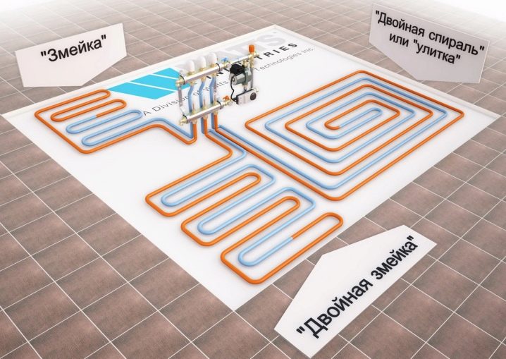 The optimal installation scheme is “the snail”: its laboriousness, the need for careful fitting is justified by a completely uniform and uniform heating of the entire floor surface.