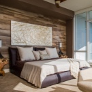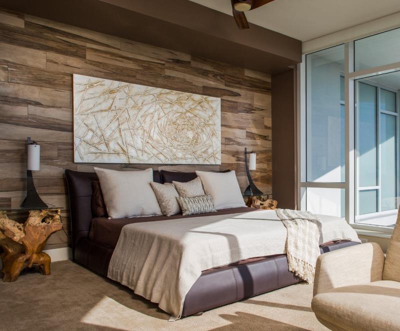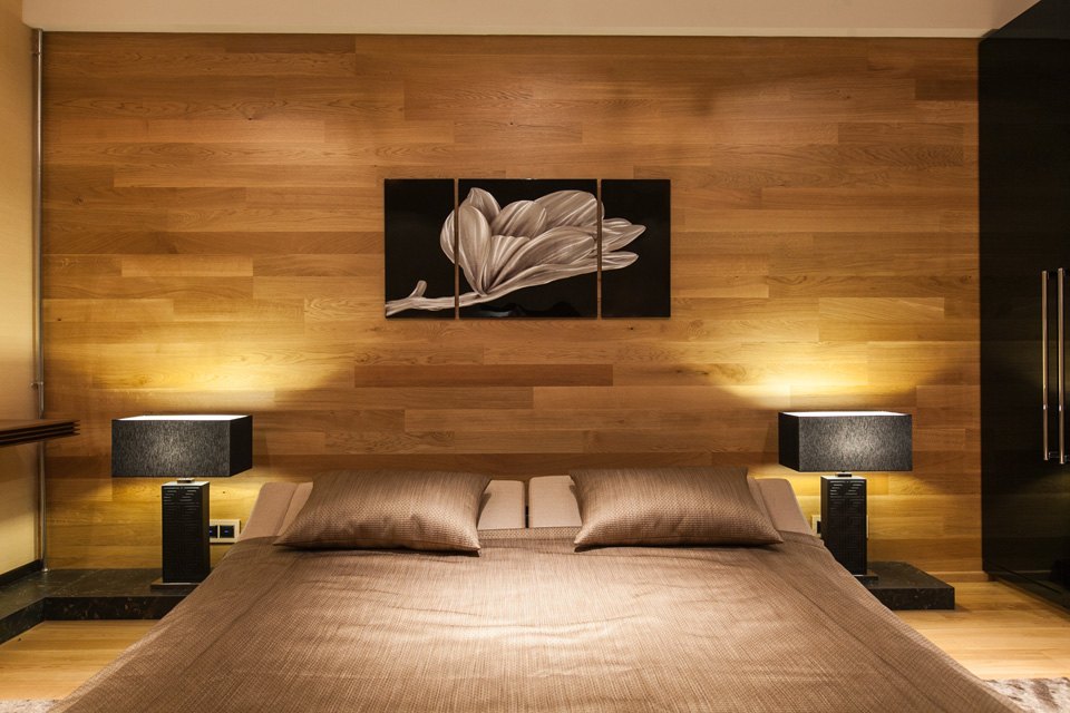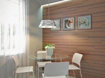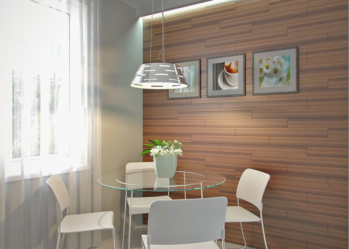 The design of rooms for different purposes may vary.In the hallways, they usually decorate the entire surface of the walls - from below with laminate, reproducing the look of wood, and from above - with wallpaper that is lighter. In the kitchen, you can pick up a coating that simulates cork, marble, wood, granite and tile. For bedrooms, it makes sense to select solutions that depict natural wood - they will make the view more respectable and richer. As an option, consider using panels with dissimilar patterns, colors, and patterns. It is advisable to select plots as gently and gently as possible, which will bring a feeling of warmth and comfort to the room.