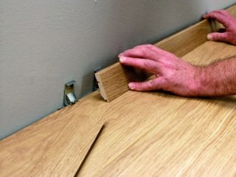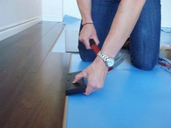 Groove type laminate is equipped with the same lock. It is permissible to unfold this coating without smearing the tongues with glues. Because the boundaries of the individual boards will not be stained with adhesive. If you do not want to glue at all, you can nail the product to the surface in the manner of an ordinary lining. It is attached to a lattice made of wood with furniture studs or adhesive cloths (the second variant is also suitable for an iron base).