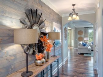 Having laid out from the additional panels the lower strip with a length of 0.6-0.8 meters, then up to the ceiling the wall of the corridor can be sheathed with the main panels.Horizontally looking connection closes on baseboard. Vertically directed joints are fixed with parts of the same product at a certain interval, and it starts up along the lined acrylic surface. So it turns out the romance of the Middle Ages, appropriate in the bedroom and in the living room. Replace the torches can fluorescent lamps.