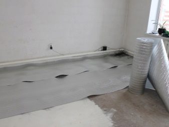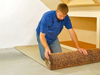 - Under the substrate must be put waterproofing layer. This does not apply to the foil base, it is simply placed on the floor by the side that is reinforced with foil. Lay waterproofing necessarily when using natural materials (cork, needles), this will prevent the formation of mold and mildew.