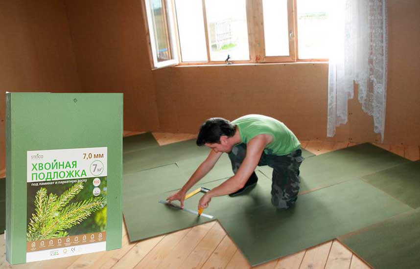Cork lining under the laminate is made of crushed bark of the same tree. This is one of the most suitable materials for this purpose. It has the following properties: