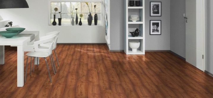 Laminate flooring has become a popular flooring thanks to its simple installation method. Another reason for the popularity of coverage can be called a wide selection of color and texture solutions. Laminates of a laminate are presented in the form of the pressed wood-fiber plates connected to several layers of paper. Often, for a more aesthetic appearance, the paper layer is covered with a pattern imitating wood. For the resistance of the coating to various external influences, an acrylic or melamine resin is applied with the top layer.