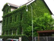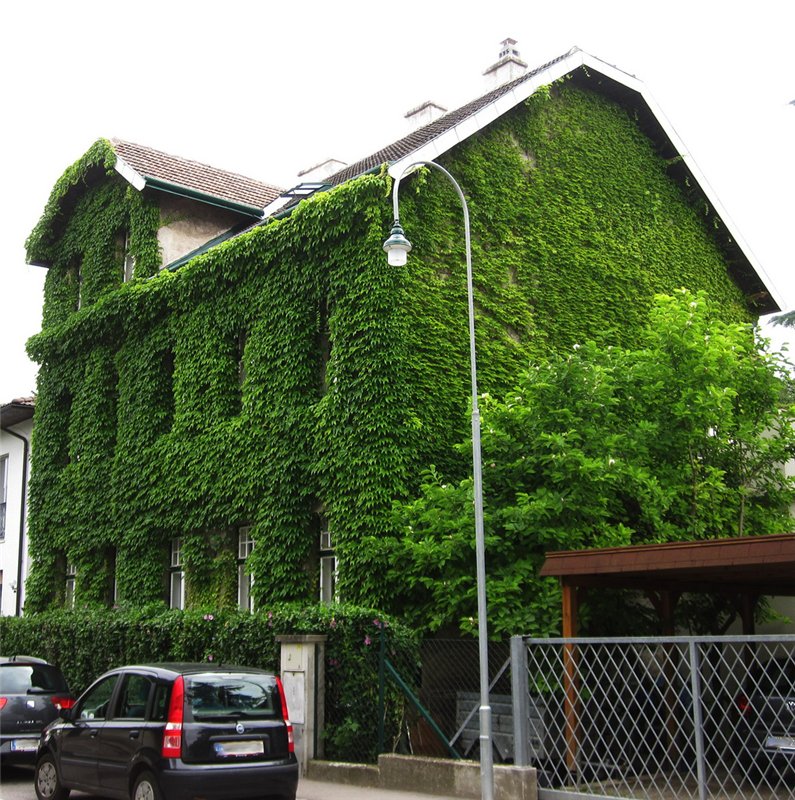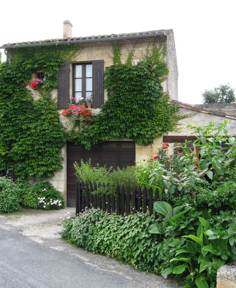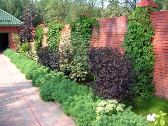 In addition to low trim colors, you can also use flowering shrubs. For example, jasmine, lilac, or even hops. With his green leaves he will make one of the walls green.