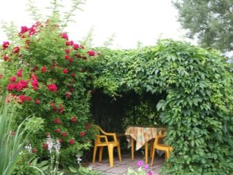 Climbing plants can also be used as partitions. They will braid the construction of any height. This live wall of natural green color is the best fit in the style of the site.