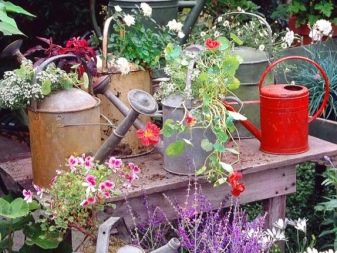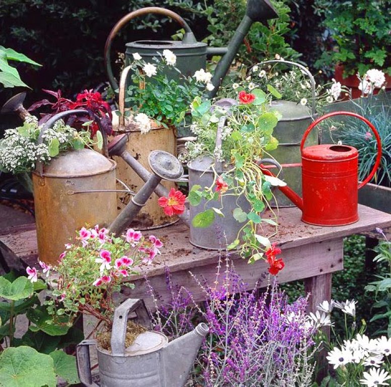 Private country-style courtyards can be decorated with everything that comes to your hand. This is both beneficial and practical. You will not spend on such a decor a single ruble. To decorate the territory adjacent to the house, you can use old carts, wheels, wooden cars, which can no longer be used for its intended purpose, or even buckets and watering cans. They can be arranged and hung over the territory of the site or even used as improvised flower beds, filling with earth and flowers.