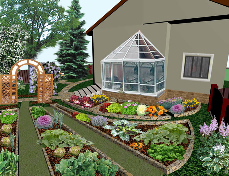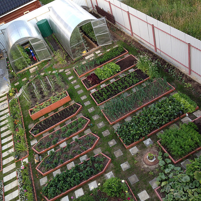 You can plant carrots, herbs, lettuce and so on in even rows. Such neat beds will serve as a source of fresh and healthy food, as well as an interesting addition to the site.