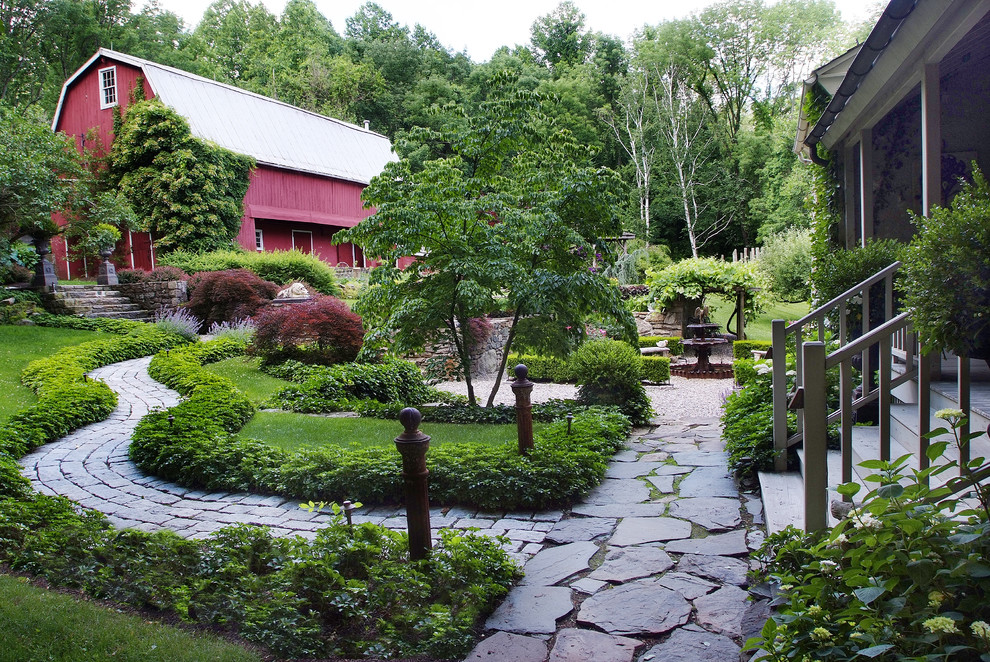 This item has a lot in common with the previous one. The ideal rustic courtyard may look slightly neglected. You can not bother sowing special herbs, allowing weeds and wild flowers to appear here and there on the territory of your site.And the walls of the gazebo or the house itself may well be entwined with ivy or wild grapes.