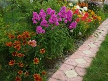 Flower beds are often drawn up along the walls of the house or curb. A variety of plants planted around the house, make the building more attractive and will decorate even the most simple and budget fencing.