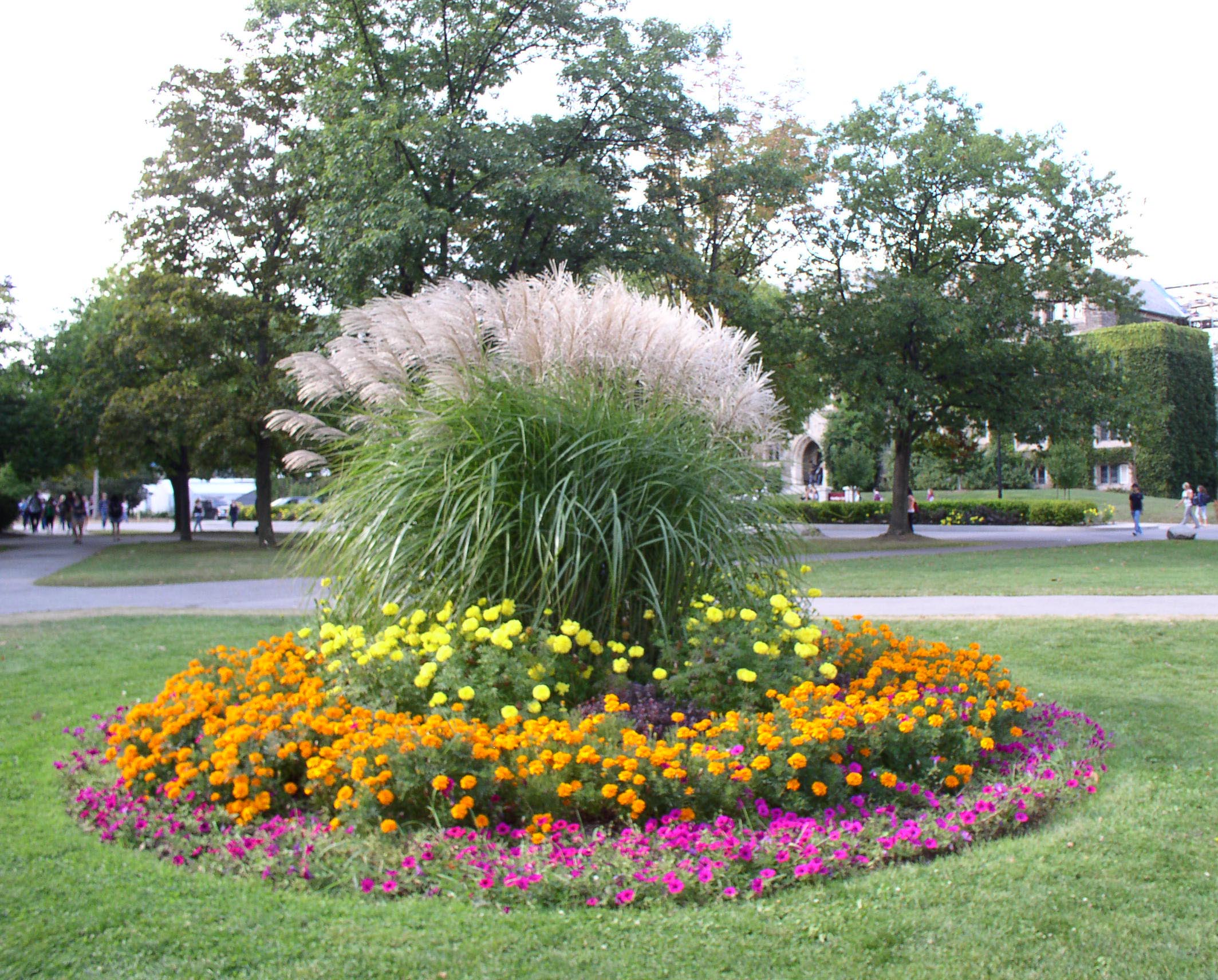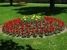 If you decide to give the flower garden a round shape, consider the color of flowers, their shape and height in the process of creating the composition.