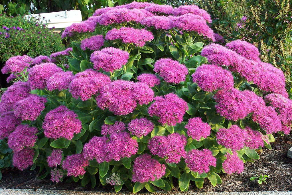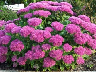 - Sedum. The plant has many species. The most popular is a shrub with lush, bright pink buds.