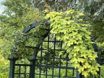 When choosing flowers for flower beds, choose options with colorful buds. If you want to complement the style of trees, the ideal variety of fruit varieties: pear, apple, cherry. Great climbers climb.