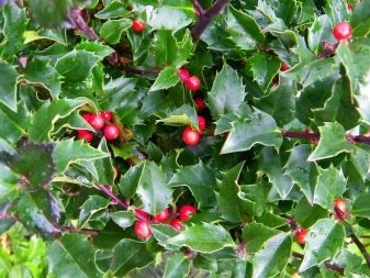 - Holly.A genus of shrubs and trees, which is characterized by bright red berries and leaves of the original form.