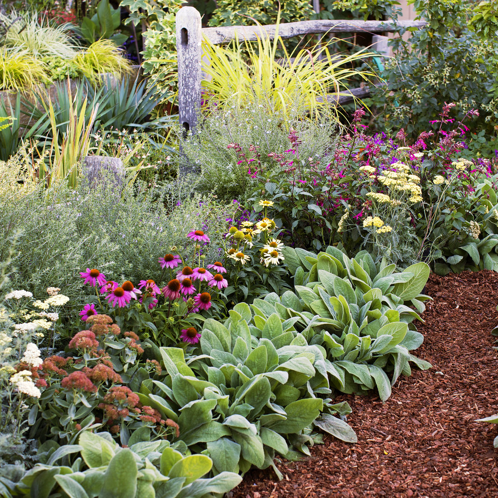 Reception "Rainbow Bench" is a design of a flower garden near the bench or bench. This design will create a cozy area for rest and relaxation on the territory of the land plot. In this case, such plants are used: