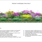 - June: Turkish carnation, clematis, daylily, liatris, lilies, lupine, foxglove, peony, rose, eremurus, iris, aquilegia, cornflower, verbeynik, gravilatus, geranium, poppy, devyasil, lihnnis, mullein, pyrethrum, sunflower, mantle, poppy, povor, grapevine, poppy, lihnis, mullein, pyrethrum, sunflower, poppy, graviatus, geranium Obrietta, Kislitsa, yaskolka.
