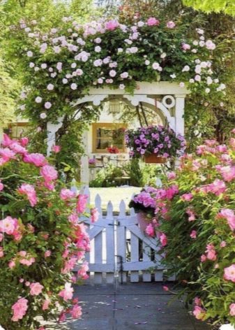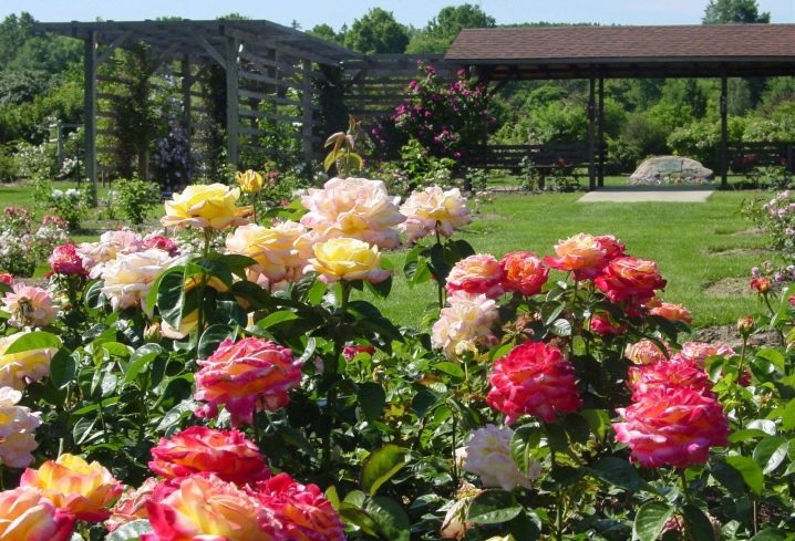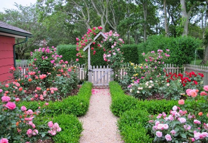 - Rose garden - A special type of flower garden, where mainly different varieties of roses are located, differing in flowering period, shapes, sizes. You can organize a regular, landscape, mixed rose garden and one in which rose-tapeworms.