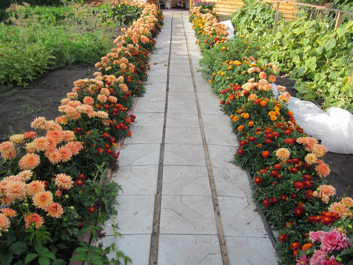 - Rabatka - an elongated flower bed located along paths, fences, buildings. Length up to 15 meters, width from half a meter to two meters, often embedded in the lawn space for the separation of zones or to create clarity of lines and shapes of the site. There are one-sided and two-sided, small (2-4 rows of plants) and wide (up to 7 rows), with a symmetrical and asymmetrical pattern, whole and intermittent. According to the design principle, you can select floral, carpet, ornamental.