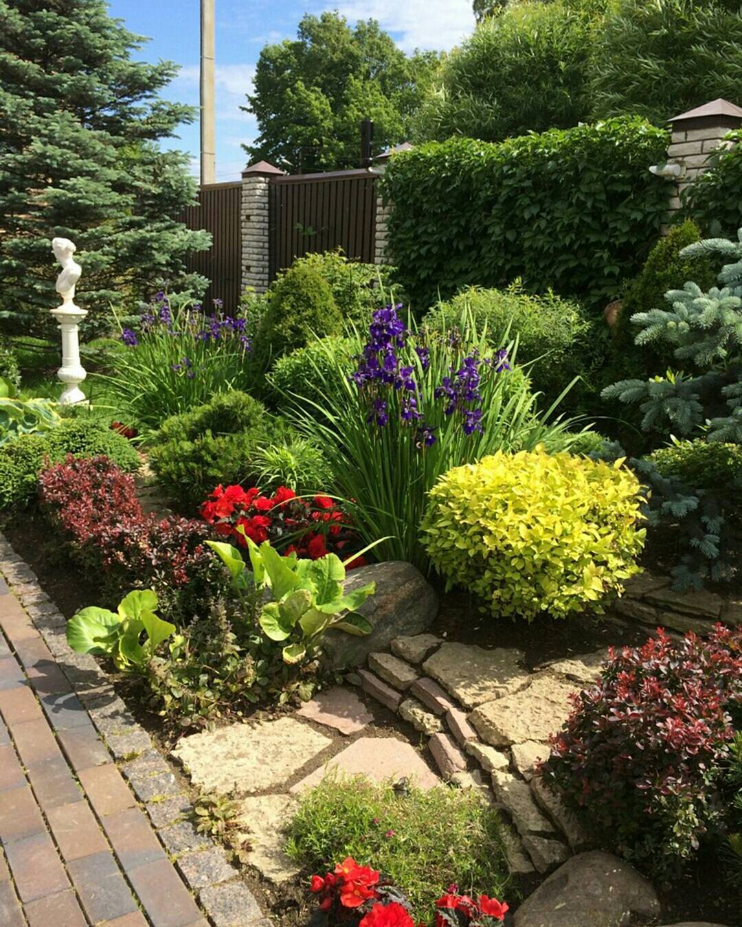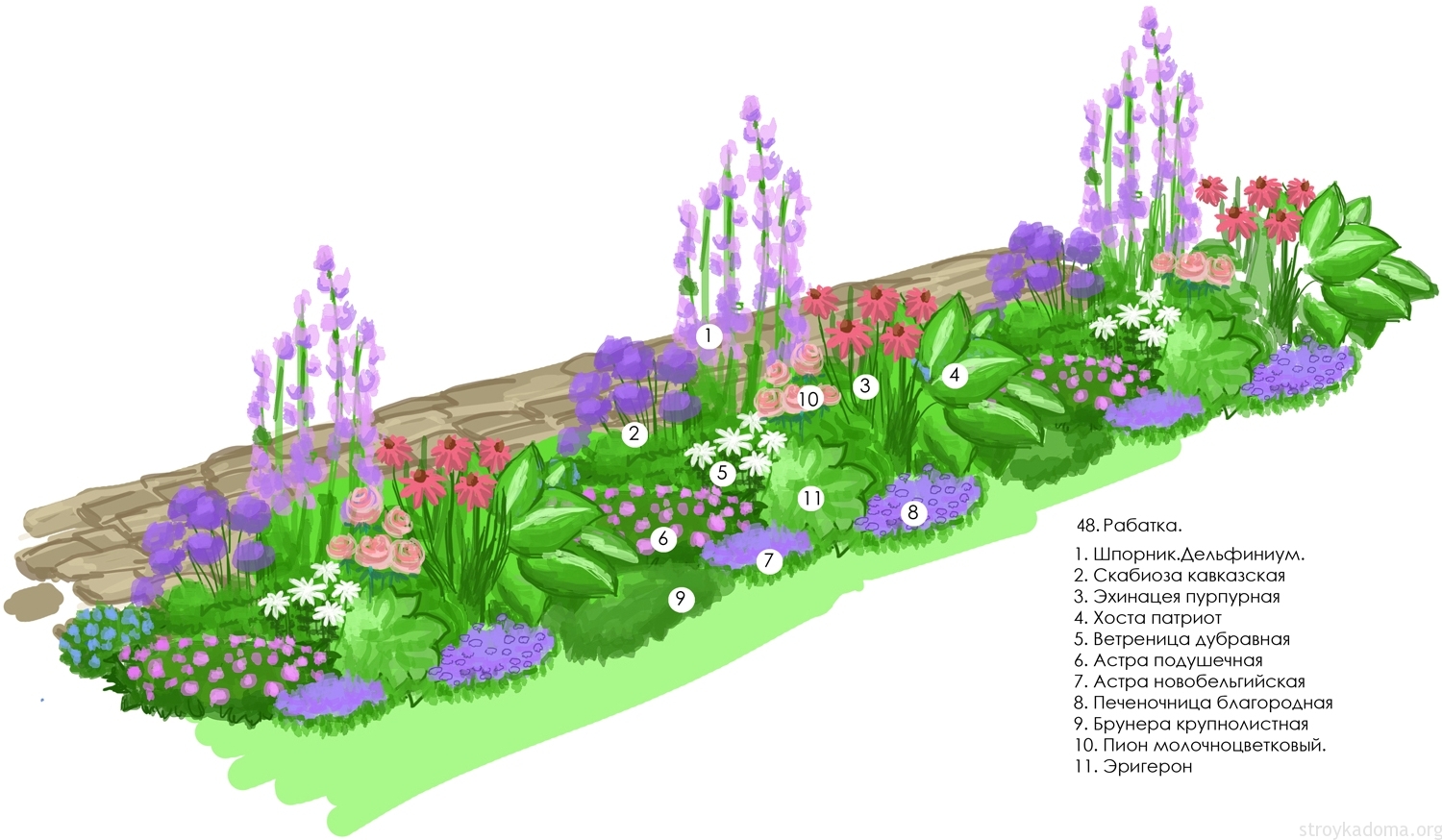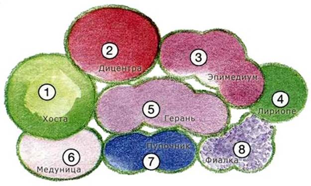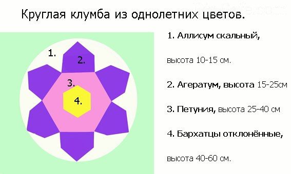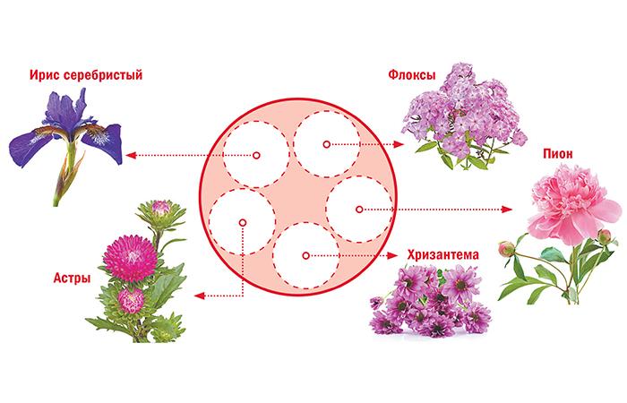 When choosing the flowering time, you should try to place early-flowering varieties along the edge, and later ones in the center. Tall specimens are planted so that they do not obscure low and creeping varieties. The center of the composition is considered to be the best place for them; you can arrange the background for them. In their shade, you can plant shade-tolerant plants. But for the sun love you need to prepare the most illuminated area in the landings.