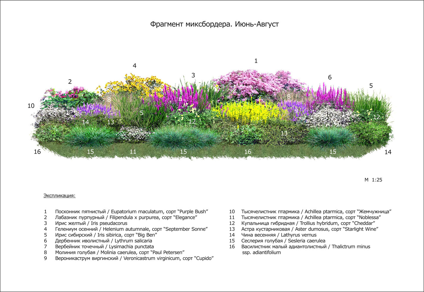 - Mixborder - flower composition, which is a combination of plants planted in several tiers, which form a continuously flowering multi-row pattern. Distinguish: English, meadow, village, garden.