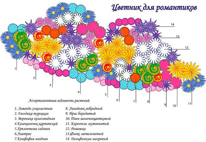Options schemes for different types of flower beds: