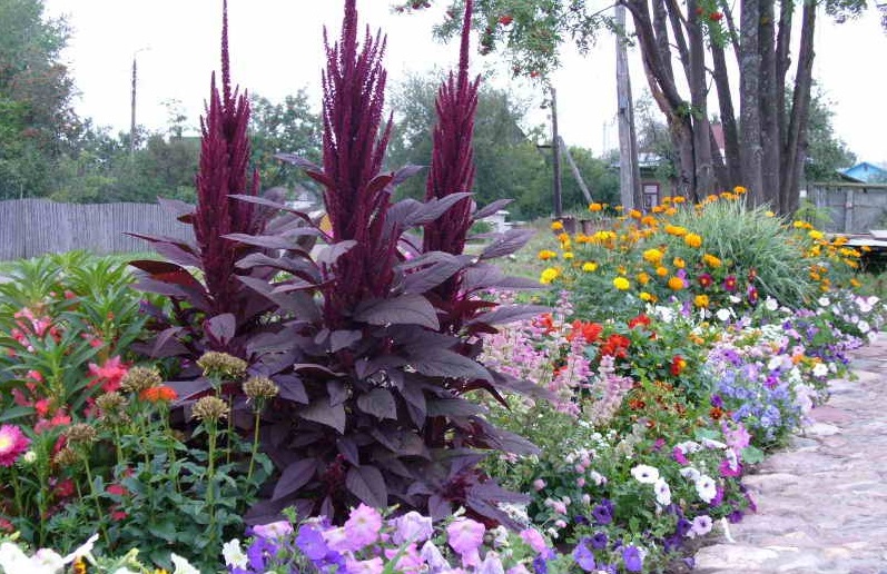 - "Giants". Their height varies from 90 centimeters to two meters. Almost all varieties belonging to this group do not tolerate shade and prefer sunny places with loose treated soil. The most spectacular: stock-rose, tricyrtis, sunflower, basil, amaranth.