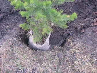 The root neck of the plant must be on a par with the ground. If you deepen it, the pine tree will hurt and lose its attractiveness. In the case of large varieties, the neck needs to be lifted just above the ground - about 5-10 centimeters. After planting, the tree will independently fall to the desired level.