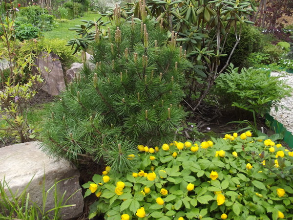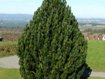 Mountain pine looks great on a plot near cottages, country houses and various commercial facilities.