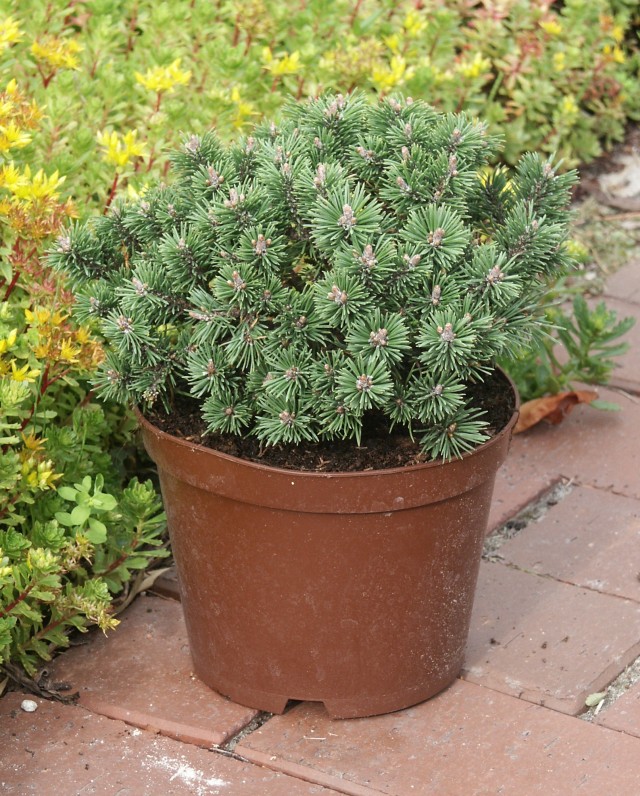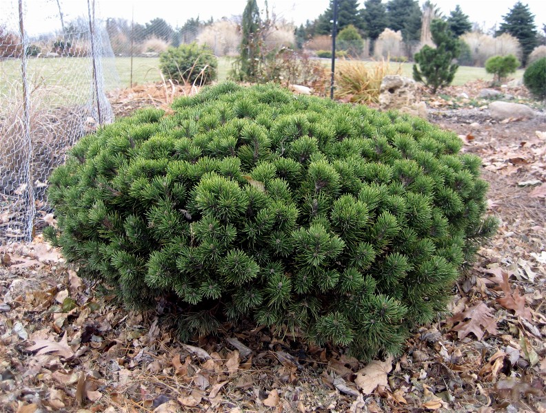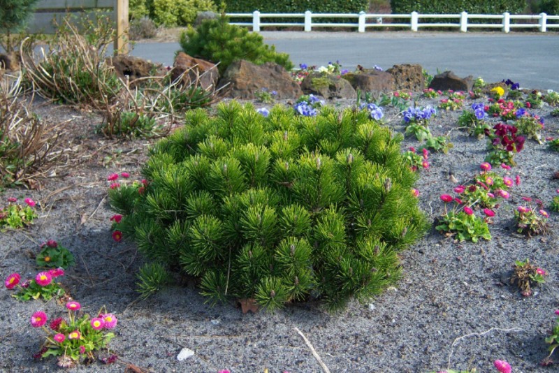 This variety is perfect for creating a small "live" fence. In group plantings pine of this species also looks great.