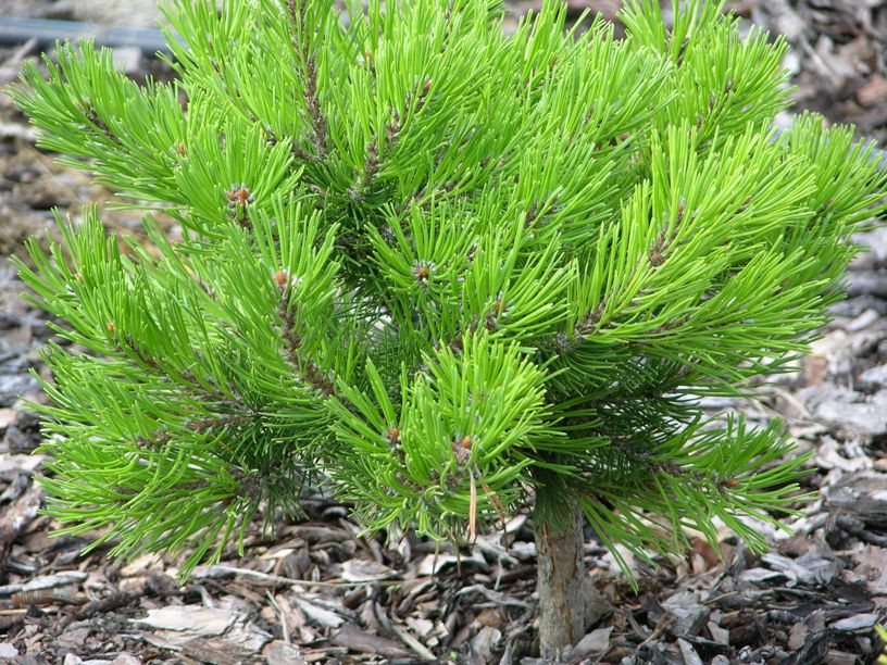 The branches are strongly pressed to the trunk, thereby creating a columnar shape. Over the year, the tree adds 20-30 centimeters in height. Needles are collected on two needles, which gives it a great pomp.