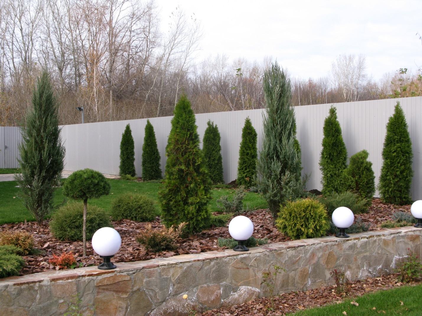 The ideal gap between compact plants should be about 1-2 meters. Larger specimens need to be planted from each other at a distance of 4 meters.