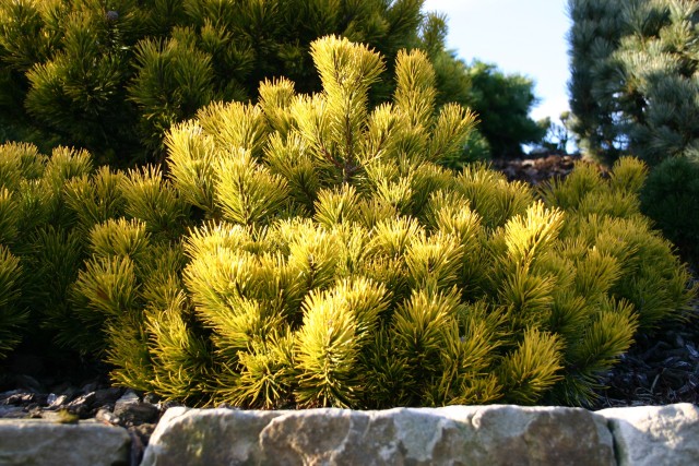 The next dwarf species of mountain pine. This variety attracts the attention of amazing color.In the warm season, the plant has a rich and thick green color that is standard for needles, and with the arrival of winter the color changes to golden yellow. "Winter Gold" is perfect in order to make in the overall plant composition of bright colors. Yellow is a perfect match with green.