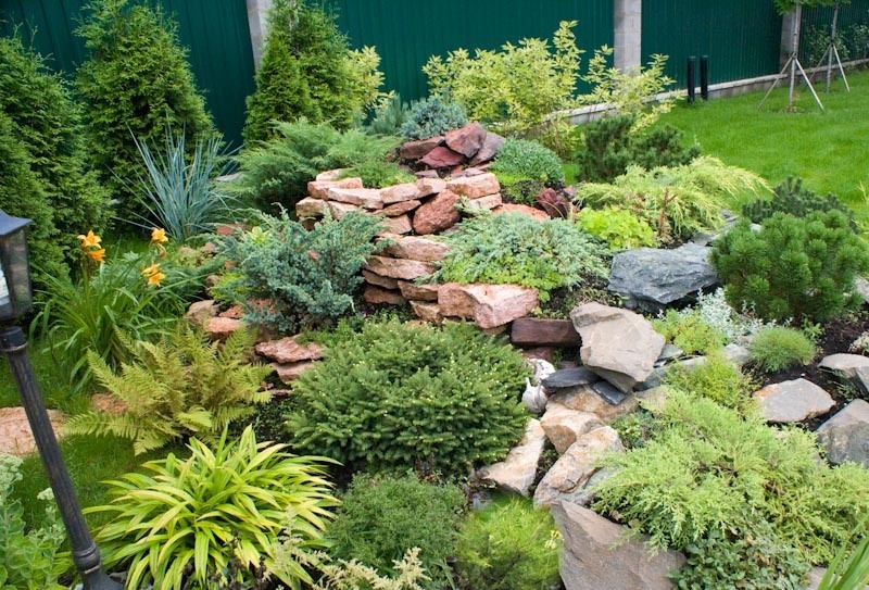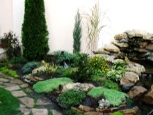 The principle of creating an alpine slide is the same as that of rock arias - a combination of conifers with stones and other types of vegetation to create a miniature imitation of wildlife. but Alpine slide requires more light, and cascade structure gives it charm. In such a composition, a clearly expressed longline and the arrangement of the elements in descending order appear.