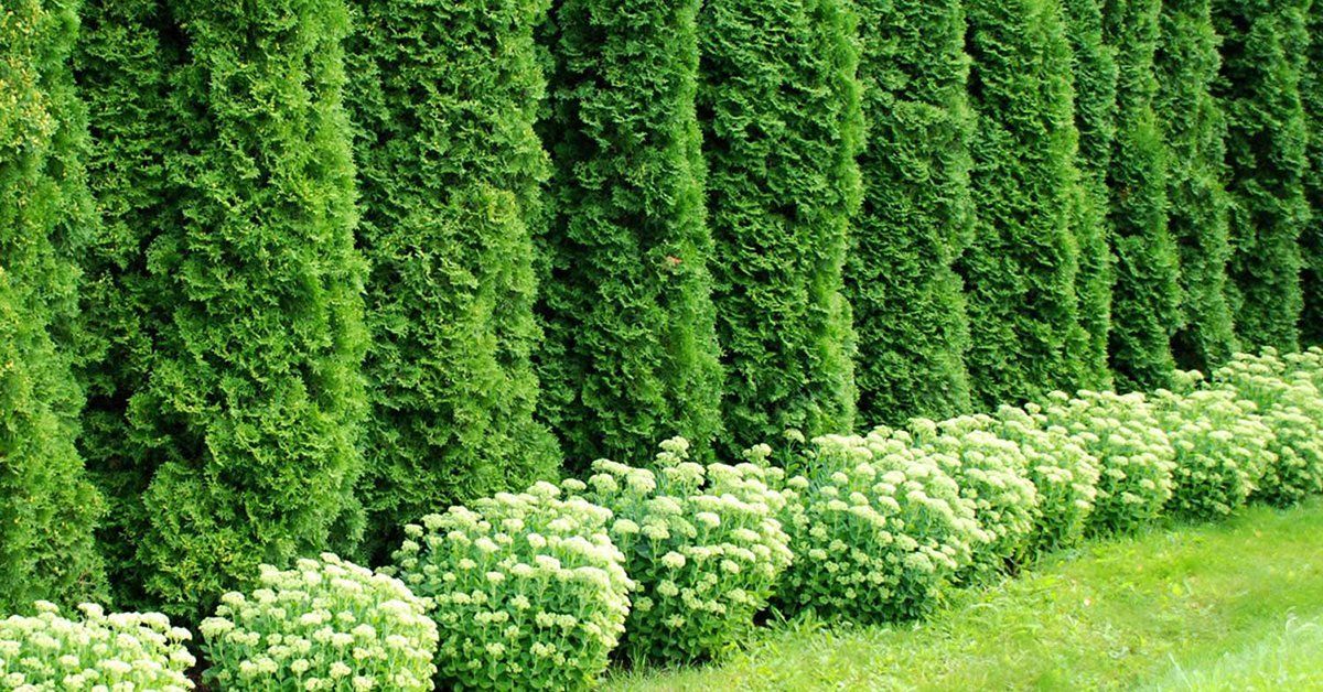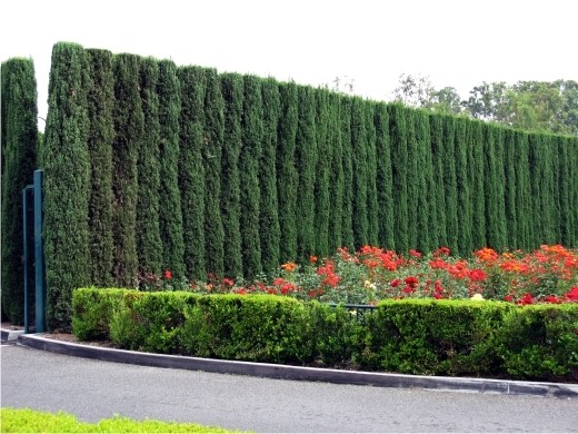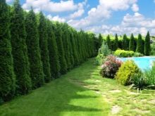 Due to the dense crowns cypress and thuja are ideal for creating fences and mixborders.